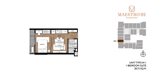 A4-1 : พื้นที่ใช้สอย 28.72 ตร.ม. (