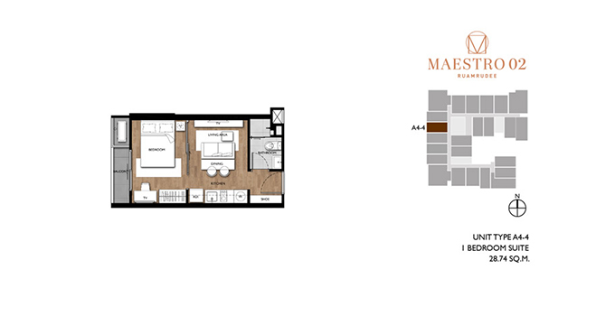 A4-4 : พื้นที่ใช้สอย 28.74 ตร.ม. (