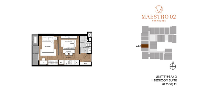 A4-2 : พื้นที่ใช้สอย 28.75 ตร.ม. (