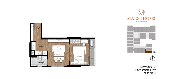 A1-1 : พื้นที่ใช้สอย 37.29 ตร.ม. (