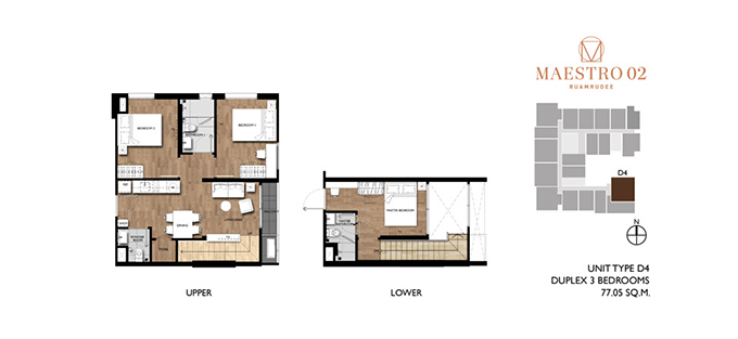 D4 : พื้นที่ใช้สอย 77.05 ตร.ม. (