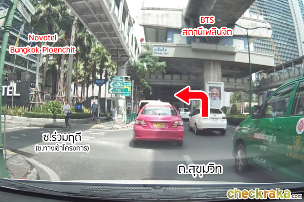 มาทางถนนสุขุมวิท จากแยกนานามุ่งหน้า BTS เพลินจิต ให้ตรงไปเรื่อยๆ