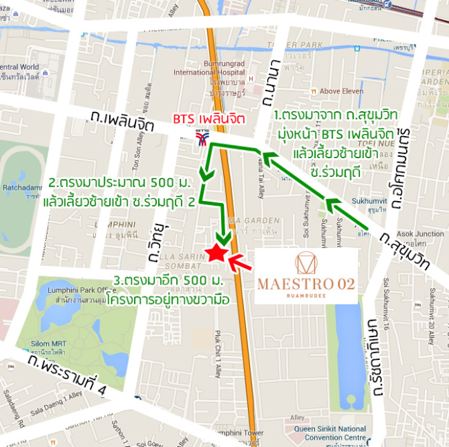 - ที่ตั้งโครงการ : ซอยร่วมฤดี 2 ถนนเพลินจิต เขตปทุมวัน กรุงเทพฯ 10310