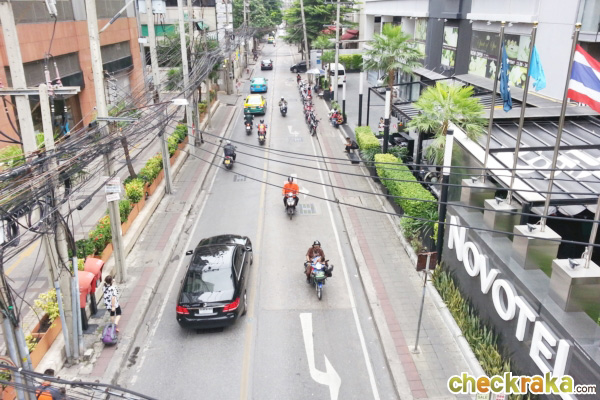 เดินมาจะเห็นโรงแรม Novotel อยู่ด้านขวามือของสถานีรถไฟฟ้า