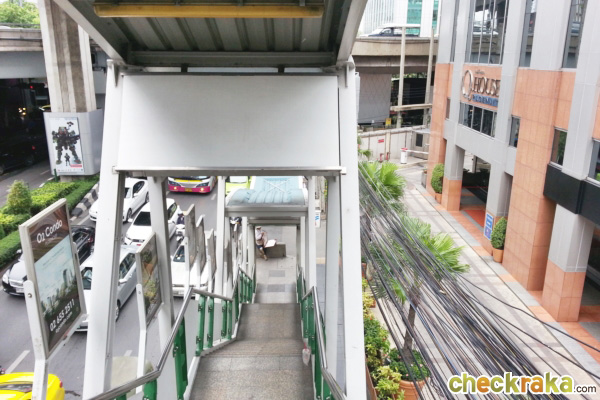 บันไดทางลงรถไฟฟ้า จะเห็นอาคาร Q House อยู่ทางขวามือค่ะ