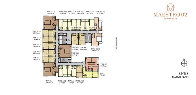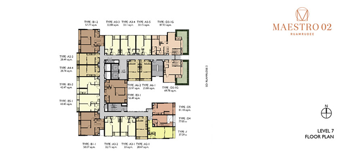 B5-2 : พื้นที่ใช้สอย 42.47 ตร.ม. (คลิกเพื่อชมตัวอย่างแปลน) แบบ 2 ห้องนอน (พื้นที่ใช้สอย 54.0-57.7 ตร.ม.)B1-1 : พื้นที่ใช้สอย 58.07 ตร.ม. (คลิกเพื่อชมตัวอย่างแปลน)