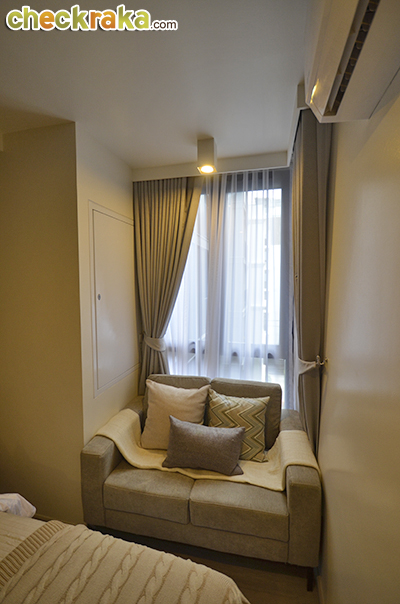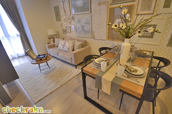 - รูปแบบห้องและวัสดุ - มี Type ให้เลือกหลากหลาย ไม่ว่าจะเป็นแบบ 1 หรือ 2 ห้องนอน รวมถึงห้องแบบ Duplex สำหรับ Floor To Ceiling 2.45 ม. ประตูลามิเนตและพื้นลามิเนตหน้า 8 มม. ตัวโครงการขายแบบ Fully Furnished ค่ะ ให้เฟอร์นิเจอร์ Bulit-in และแบบลอยตัวหลายรายการ วัสดุและเฟอร์นิเจอร์ที่ทางโครงการให้มาก็ถือว่าคุ้มราคาทีเดียวค่ะ ตอบโจทย์ไลฟ์สไตล์คนยุคนี้อย่างมากที่เน้นความสะดวก สามารถหิ้วกระเป๋าเข้าอยู่ได้เลย