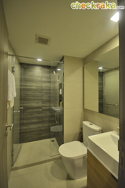 ห้องน้ำสุขภัณฑ์จาก American Standard กั้นส่วนเปียกและส่วนแห้งเรียบร้อยค่ะ