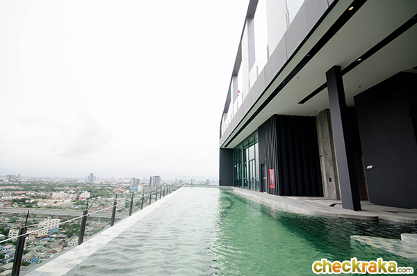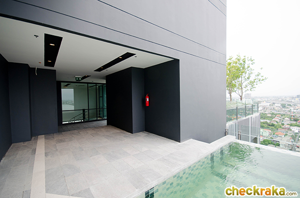 Triple Sky Facilities ให้ส่วนกลางเหนือระดับบนชั้นดาดฟ้า Infinity Edge Swimming Pool อยู่บนชั้น 29 เป็นสระ ระบบเกลือขนาด 25x4 เมตร ลึก 1.2 เมตร (ไม่ได้แยกสระเด็กแต่มีขั้นบันไดเล็กๆ ให้เด็กเล่นได้ค่ะ) มีห้องอาบน้ำและที่สำหรับล้างตัวอยู่ริมสระ Sky Fitness อยู่บนชั้น 29 มองเห็น วิ ว 2 ด้าน ทั้งวิวสระว่ายน้ำและวิวเมือง สามารถมองเห็นวิวแม่น้ำเจ้าพระยาและวิวเส้นทางรถไฟฟ้ายามค่ำคืนก็สวยงามค่ะ Sky Outdoor Library อยู่บนชั้น 28 เป็นพื้นที่อ่านหนังสือหรือทำงานก็ได้ค่ะ โดยสามารถนั่งมองวิวสูงระหว่างทำงานไปเพลินๆ ได้เลย Sky Deck Social Club เป็นห้องสันทนาการที่สามารถมานั่งเล่น ปาร์ตี้ ประชุมงาน ได้หลากหลายมากค่ะ อยู่บนชั้น 28 ติดกับห้องสมุด ห้องนี้สามารถใช้เสียงได้ถึงแม้ว่าจะติดกับห้องสมุดแต่ก็แยกกันเป็นสัดส่วนดีค่ะ Private Grand Park ตัวโครงการจะแทรกสวนหย่อมหรือพื้นที่สีเขียวให้หลายจุดค่ะ มีทั้งชั้น 1, 6, 22, 25, 29 และ 30 ให้ได้ผ่อนคลายกับธรรมชาติ ระบบรักษาความปลอดภัย ทางโครงการติดตั้งกล้องวงจรปิด CCTV กว่า 200 ตัวในพื้นที่ส่วนกลาง โดยเฉพาะที่จอดรถและลิฟต์โดยสารจะมีจอ LCD แสดงภาพบุคคลที่อยู่ในลิฟต์ที่ทุกคนสามารถมองเห็นได้จากด้านนอกลิฟต์ เผื่อเกิดเหตุฉุกเฉินจะได้ช่วยเหลือได้ทันเหตุการณ์ค่ะ Lobby ชั้น 1 ตกแต่งสวยงาม กว้างขวางทีเดียวค่ะ
