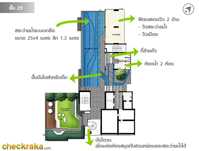 ชั้น 29 ไม่มีห้องพักอาศัยนะคะ ถือเป็นชั้น Facility โดยเฉพาะเลยค่ะ ประกอบด้วยสระว่ายน้ำ, ฟิตเนสและสวนหย่อม
