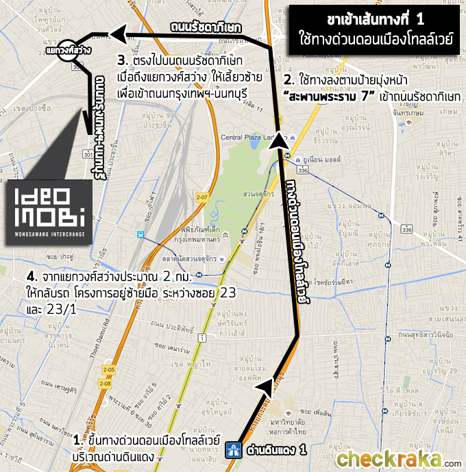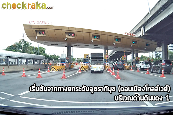 ขาเข้าโครงการเส้นทางที่ 1 - มาจากทางยกระดับอุตราภิมุข (ดอนเมืองโทลล์เวย์) ไปดูภาพประกอบการเดินทางกันค่ะ เริ่มต้นจากบริเวณด่านดินแดง 1 ขึ้นทางยกระดับอุตราภิมุข (ดอนเมืองโทลล์เวย์)