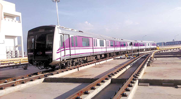 ขบวนรถไฟฟ้าสายสีม่วง ระหว่างทดลองวิ่ง