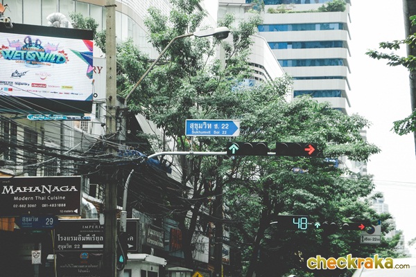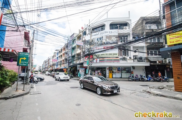 หากเดินทางด้วยรถยนต์เข้าซอยสุขุมวิท 22 มาจะมีร้านอาหาร โรงแรม คอนโดเยอะมากค่ะ