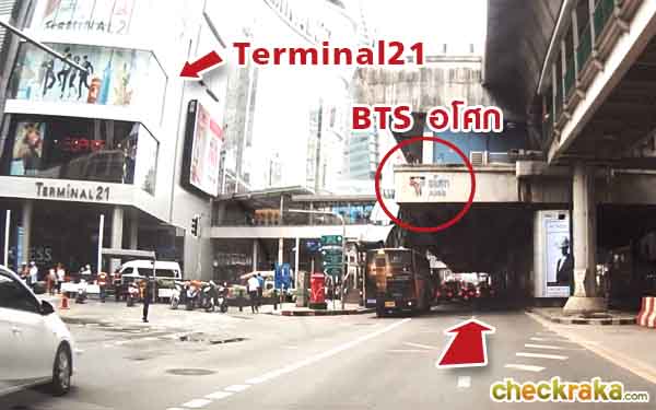 มุ่งหน้าต่อไปเรื่อยๆ ผ่าน BTS อโศก จะเห็น Terminal 21 อยู่ด้านซ้ายค่ะ