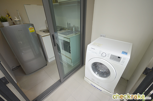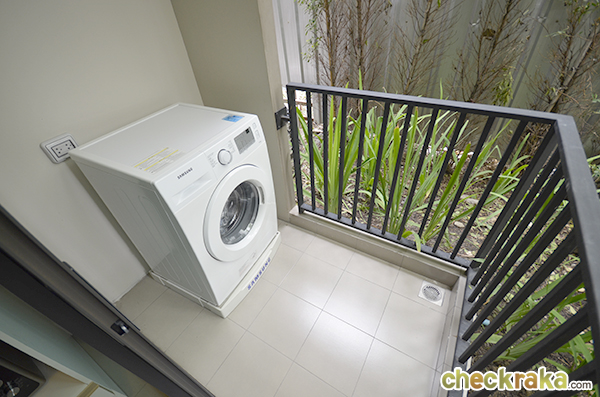 เปิดประตูออกไปที่ระเบียงเป็นจุดที่ทางโครงการเตรียมไว้สำหรับวางเครื่องซักผ้าค่ะ