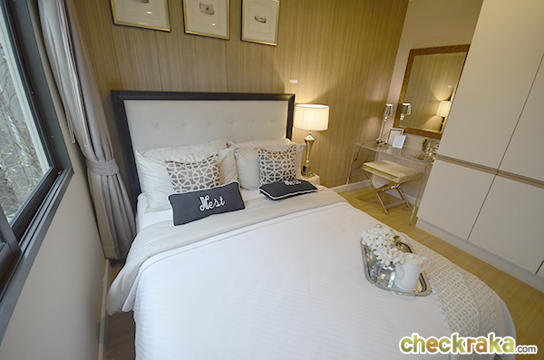 ภายในห้องนอนกว้างขวาง วางเตียง 6 ฟุต โต๊ะเครื่องแป้ง ตู้ ก็ยังมีพื้นที่เหลือ