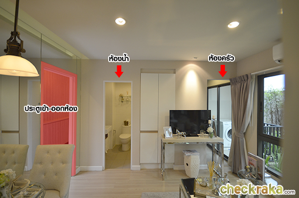 ส่วนห้องน้ำและห้องครัวนั้นจะอยู่ตรงกันข้ามกับห้องนอนค่ะ