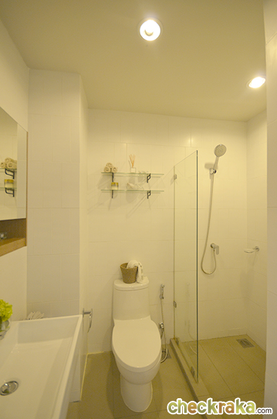 ภายในห้องน้ำส่วนเปียกและแห้งจะมีธรณีแยกให้ค่ะ สุขภัณฑ์เป็นของ American Standard หรือเทียบเท่า