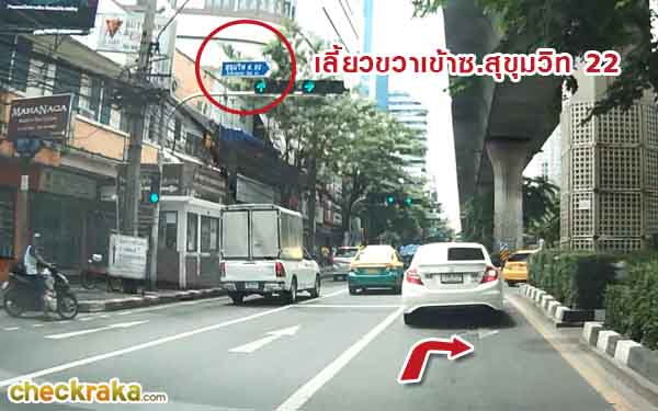 มุ่งหน้าต่อประมาณ 550 เมตร ชิดขวาแล้วเลี้ยวขวาเข้าซอยสุขุมวิท 22