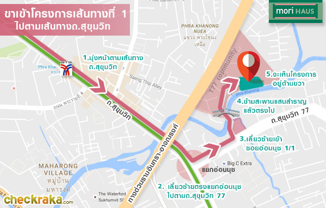เริ่มจาก BTS อ่อนนุช (ห่างจากโครงการประมาณ 1.3 กิโลเมตร)
