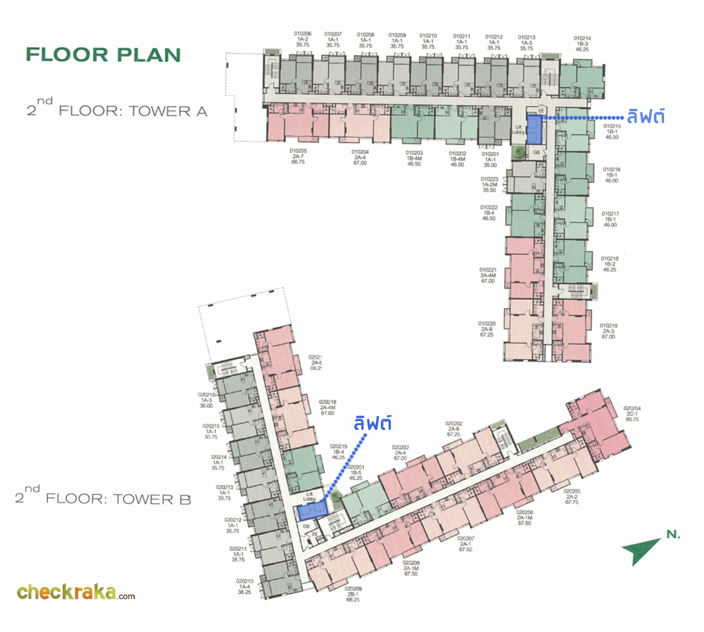 Master Plan ชั้น 2 จะเป็นส่วนพักอาศัยทั้งหมดอาคาร A มียูนิตต่อชั้นอยู่ที่ 23 ยูนิต แบ่งเป็นห้องแบบ 1 ห้อง จำนวน 18 ยูนิต และ 2 ห้องนอน 5 ยูนิต อาคาร B มียูนิตต่อชั้นอยู่ที่ 19 ยูนิต แบ่งเป็นห้องแบบ 1 ห้อง จำนวน 9 ยูนิต และ 2 ห้องนอน 10 ยูนิต Master Plan ชั้น 3, ชั้น 5 และชั้น 7 จะคล้ายกันคือ เป็นส่วนพักอาศัยทั้งหมดแต่มีจำนวนห้องเพิ่มขึ้นมาเล็กน้อยโดยอาคาร A มียูนิตต่อชั้นอยู่ที่ 24 ยูนิต แบ่งเป็นห้องแบบ 1 ห้อง จำนวน 18 ยูนิต และ 2 ห้องนอน 6 ยูนิต ส่วนอาคาร B มียูนิตต่อชั้นอยู่ที่ 20 ยูนิต แบ่งเป็นห้องแบบ 1 ห้อง จำนวน 9 ยูนิต, 2 ห้องนอน 10 ยูนิต และ 3 ห้องนอน 1 ยูนิต โดยทุกห้องที่หันหน้าออกนอกด้านนอกอาคาร (ไม่ได้หันเข้าหาสวนส่วนกลาง) จะเป็นห้องแบบ Private tree balcony คือมีต้นไม้อยู่ที่ระเบียง Master Plan ชั้น 4 และชั้น 6 จะคล้ายกันคือเป็นส่วนพักอาศัยทั้งหมด