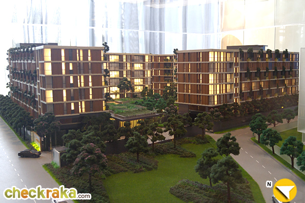 โมเดลโครงการมุมมองจากทิศตะวันตกเฉียงใต้ ฝั่งอาคาร A ค่อนข้างเปิดโล่ง