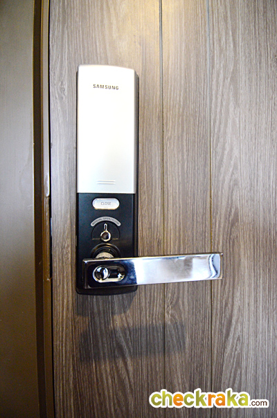 ของจริงจะเป็น ลามิเนตปิดผิวทั้งข้างใน และข้างนอก ที่เห็นในภาพเป็นเพียงแค่ของตกแต่ง ได้ Digital Door Lock ของ Samsung แบบ 3 ระบบ