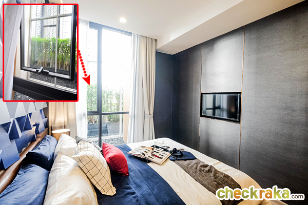 แนะนำให้ติดเป็นทีวีแบบแขวนผนังแบบนี้แทน เพื่อช่วยให้เหลือพื้นที่สำหรับเดินบริเวณปลายเตียง หน้าต่างเป็นแบบบานติดตาย และได้หน้าต่างบานกระทุ้งมาให้ 1 บานสำหรับเปิดระบายอากาศ