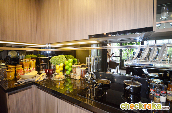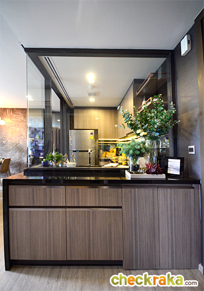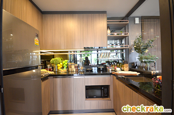 ภายในได้เคาน์เตอร์ครัวรูปตัว U มีช่องสำหรับวางไมโครเวฟอยู่ด้านล่าง ตู้เก็บของทั้งหมดภายในครัวเป็นแบบ Soft Close