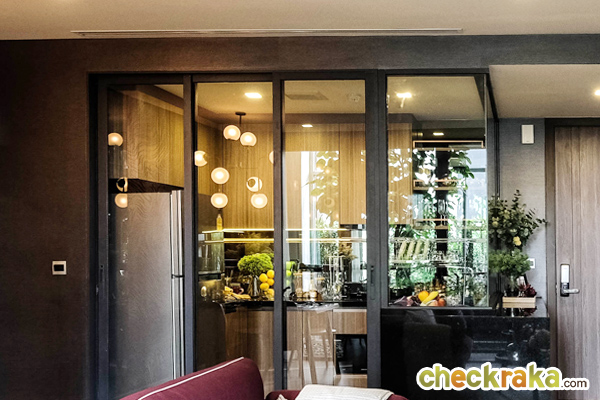 ได้ห้องครัวแบบตู้ปลา ประตูกระจกบานเลื่อนแบบ 3 ตอน เลื่อนได้ทั้ง 2 ฝั่ง