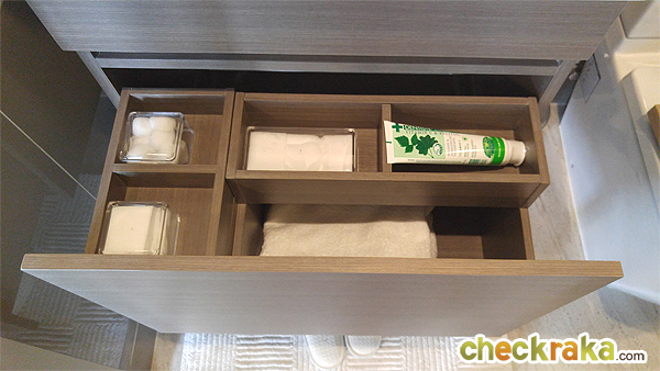 ใต้อ่างล้างหน้าเป็นลิ้นชักสำหรับเก็บของ