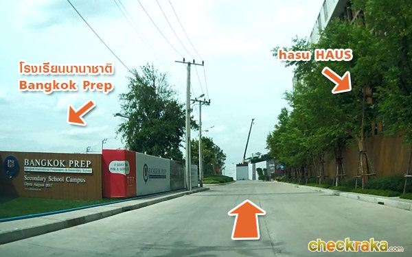 ด้านซ้ายเป็นโรงเรียนนานาชาติ Bangkok Prep ด้านขวาเป็น คอนโด hasu HAUS ให้ตรงไปอีกค่ะ
