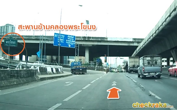 ขึ้นสะพานเพื่อข้ามคลองพระโขนง พอลงจากสะพานแล้วเตรียมชิดซ้ายได้เลยค่ะ