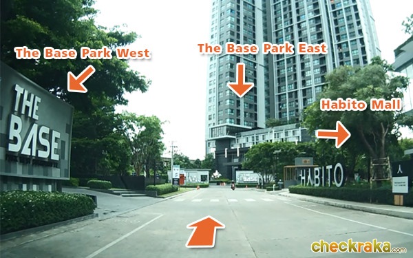 ถ้าออกจาก Habito Mall มาจะเห็น คอนโด The Base Park East