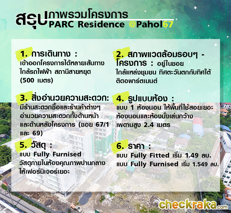 รีวิว - เยี่ยมชม โครงการ พาร์ค เรสซิเดนซ์ แอท พหล 67 (Parc Residence @ Pahol 67)