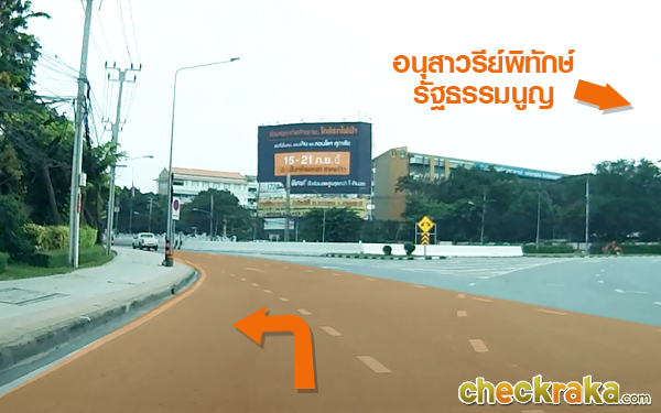 ถึงทางแยกที่วงเวียนอนุสาวรีย์พิทักษ์รัฐธรรมนูญให้เลี้ยวซ้าย