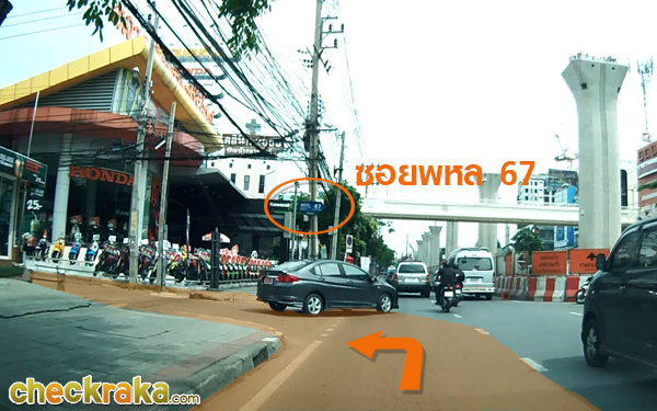 มุ่งหน้าต่อประมาณ 1.3 กิโลเมตร สังเกตโชว์รูมฮอนด้า เลี้ยวซ้ายเข้าไปในซอยพหล 67 ได้เลยค่ะ