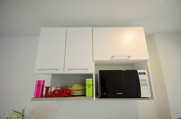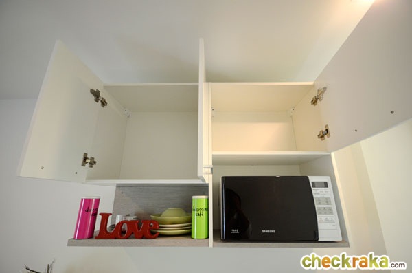 บานพับเป็นแบบ soft close ทั้งหมด ด้านบนมีช่องสำหรับใส่ไมโครเวฟมาให้ด้วยนะคะ