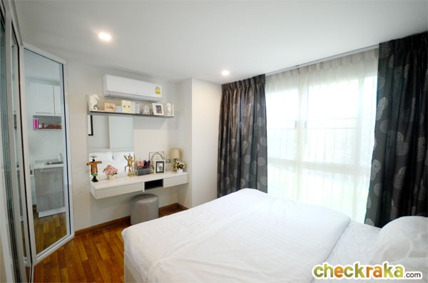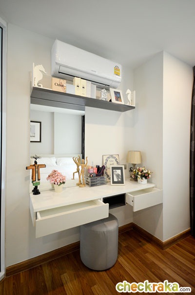 ทางโครงการ Built-in โต๊ะเครื่องแป้งสีขาวแบบนี้มาให้ พร้อมแอร์ Samsung ขนาด 9,000 BTU อีก 1 เครื่อง
