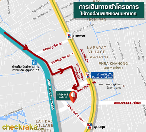 การเดินทางเข้าโครงการเส้นทางที่ 2 ลงจากทางพิเศษเฉลิมมหานคร เลี้ยวเข้าซอยสุขุมวิท 62