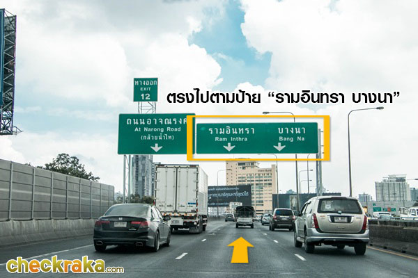 ขาเข้าโครงการเส้นทางที่ 1 เดินทางโดยใช้ทางด่วนเฉลิมมหานคร เริ่มต้นจากขึ้นทางด่วนเฉลิมมหานครค่ะ เลี้ยวซ้ายขึ้นตามป้ายท่าเรือ - บางนา ดาวคะนอง