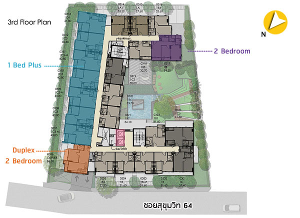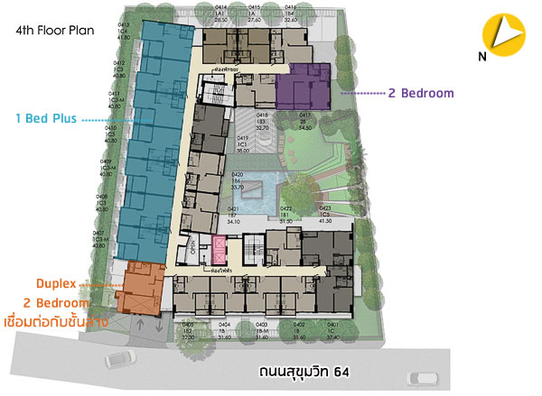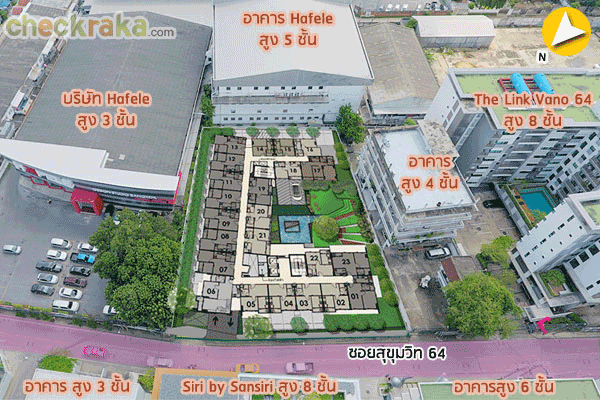 ด้านหน้าโครงการอยู่ทางทิศเหนือติดกับซอยสุขุมวิท 64