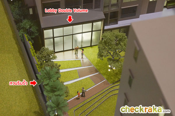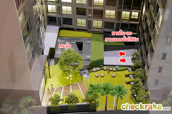 โครงการฝั่งทิศตะวันตกจะมองเห็นพื้นที่ส่วนกลางบริเวณชั้น 1 มี Boutique Courtyard (สวนหย่อม)
