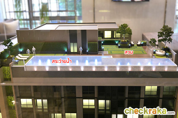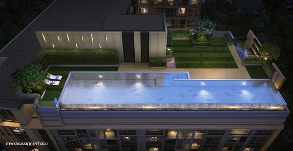 ภาพจำลองบรรยากาศสระว่ายน้ำระบบเกลือ และสวนพักผ่อนบนชั้นดาดฟ้า ภาพห้องตัวอย่างและ Lay Out