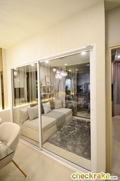 ถัดไปเป็นห้องอเนกประสงค์กั้นด้วยประตูกระจกบานเลื่อนแบบ 2 ตอน กรอบสีขาว