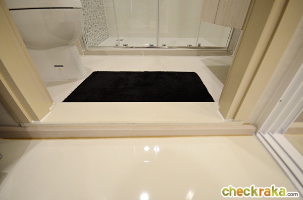 ระหว่างห้องตัวและห้องน้ำมีธรณีกั้นสูงประมาณ 7 ซม.