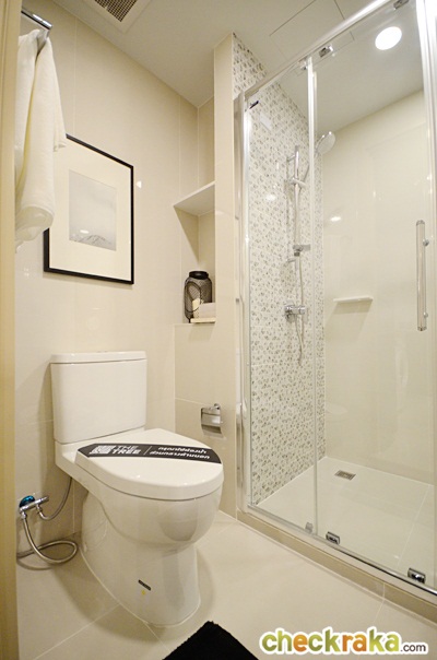 ห้องนี้ได้ฉากกั้นอาบน้ำเป็นแบบบานเลื่อนเปิดจากตรงกลาง และพื้นที่อาบน้ำที่กว้างมากขึ้น