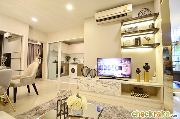 ในห้องนี้ทางโครงการติดแอร์ขนาด 9,000 BTU มาให้ 1 เครื่อง ซึ่งตกแต่งเป็นเป็นห้องนั่งเล่นให้ดูเป็นตัวอย่าง