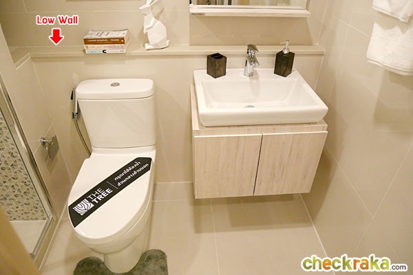 ใต้กระจกเงาก่อเป็น Low Wall สำหรับวางของใช้ในห้องน้ำได้