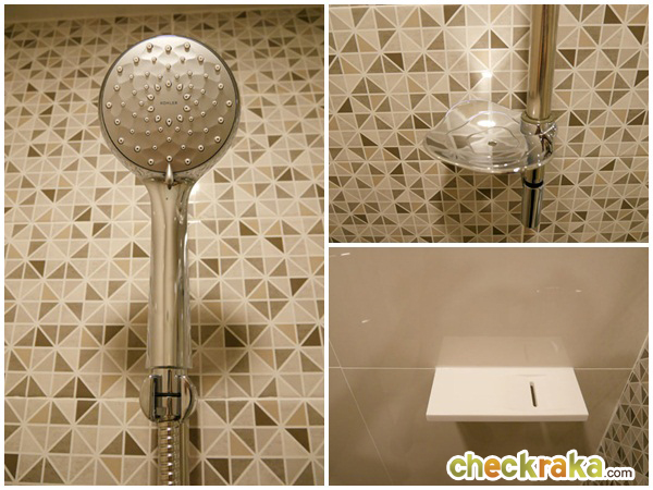 ได้ฝักบัวอาบน้ำของ Kohler พร้อมที่วางสบู่ถึง 2 จุด